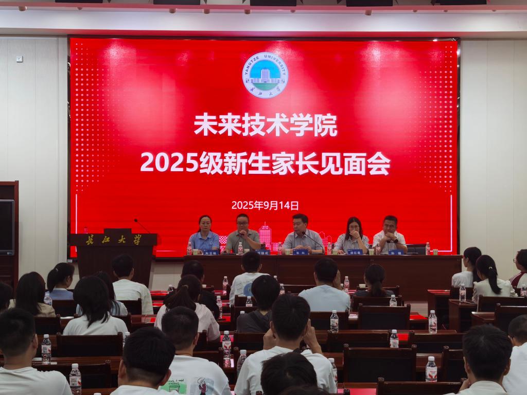 (通讯员魏芷阳)金风送爽,丹桂飘香,又是一年入学季。为了加强家校沟通,凝聚育人合力,共同助力新生成长,9月14日晚7点,长江大学未来技术学院2025级新生家长见面会在东校区就业宣讲大厅隆重举行。长江大学党委学生工作部部长、党委武装部部长兼本科生学院常务副院长张科,副院长邓福成、孙健、胡红霞,辅导员兼班主任向云彬老师出席此次会议,与新生及其家长共话育人蓝图。
