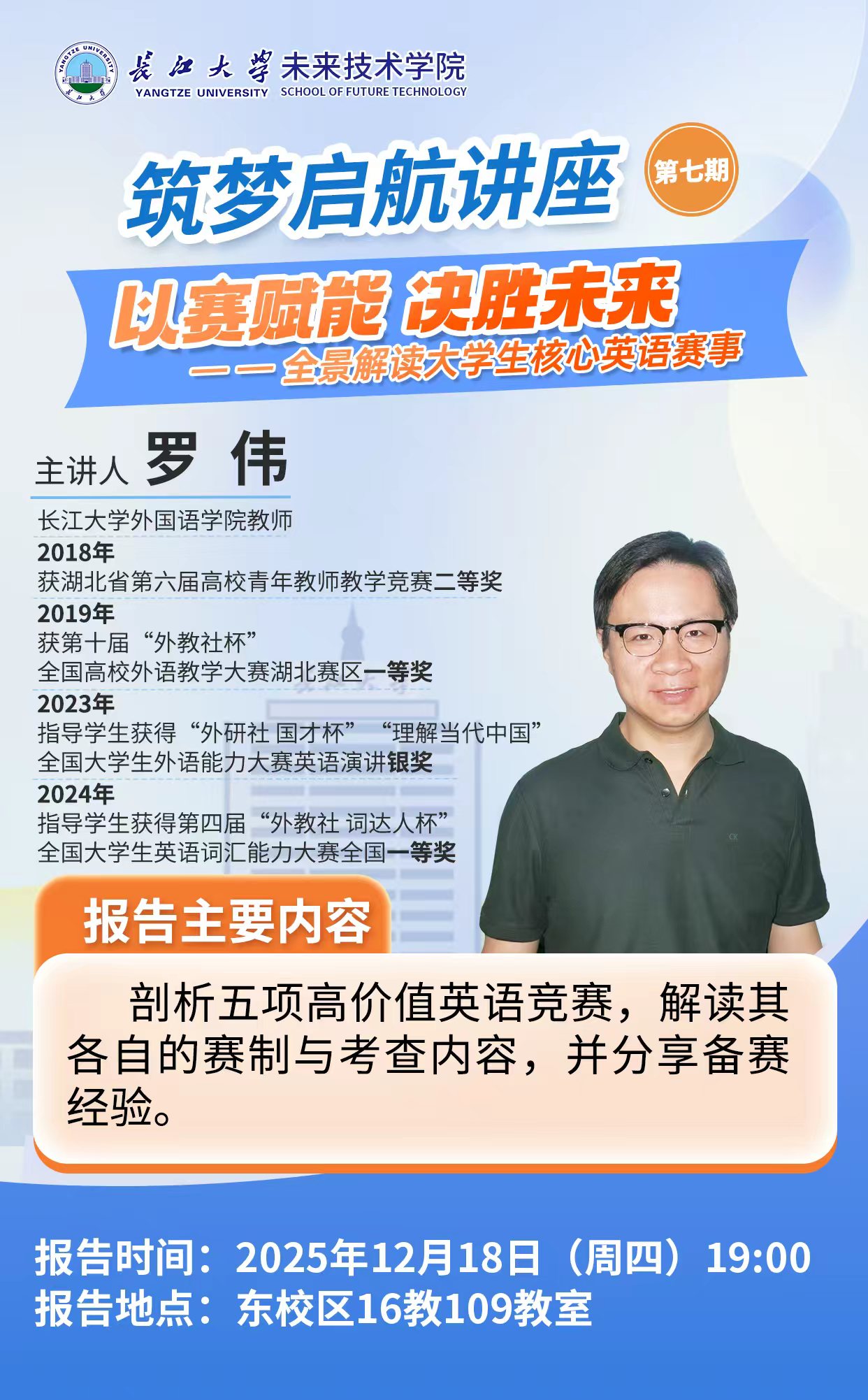 筑梦启航讲座(第七期):以赛赋能,决胜未来:全景解读大学生核心英语赛事
