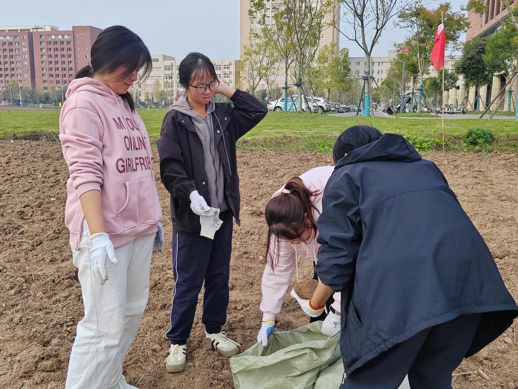 初冬的午后,阳光和煦。同学们热情高涨,早早抵达劳动场地,迅速投入到热火朝天的工作中。本次劳动的主要任务是进一步清理土地中的建筑残留物。同学们俯身于田地间,细心捡拾着深埋在土壤里的碎砖块与碎石块,并将它们一一装入麻袋。大家分工协作,默契配合,形成了一条高效的“人力传输带”,齐心协力将一袋袋沉甸甸的石块运出田地。汗水浸湿了衣襟,但每个人的脸上都洋溢着劳动的充实与为校园添彩的自豪。